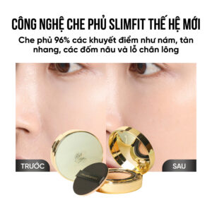 – Công nghệ che phủ Slim Fit thế hệ mới che phủ tốt các đốm nâu và khuyết điểm như lỗ chân lông và nếp nhăn nhỏ chỉ với vài lần dặm phấn. Chỉ số chống nắng SPF40/PA++ bảo vệ da khỏi tác động của ánh nắng mặt trời.