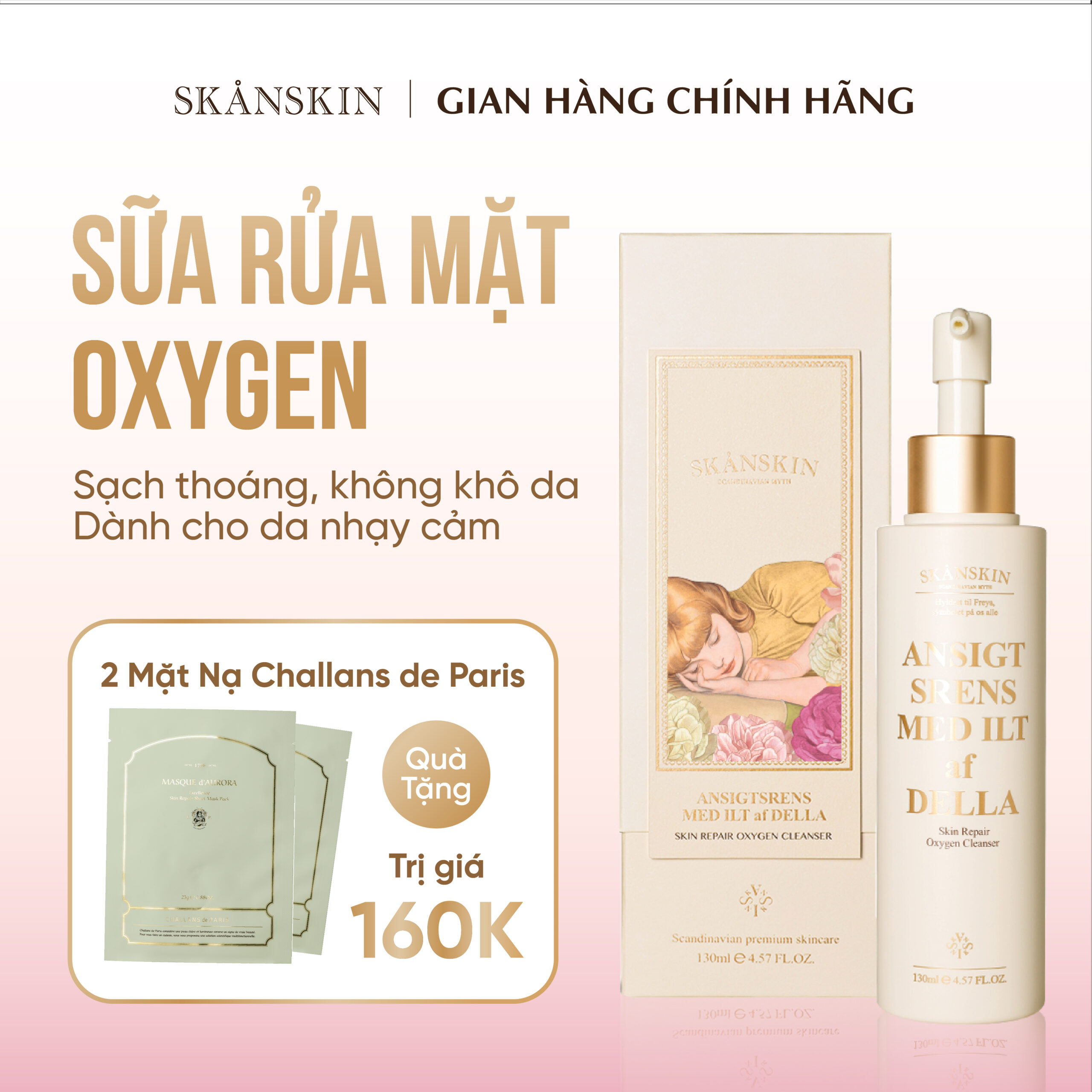 Sữa Rửa Mặt Skanskin Skin Repair Oxygen Cleanser Tái Tạo Phục Hồi Dưỡng Trắng (130ML)